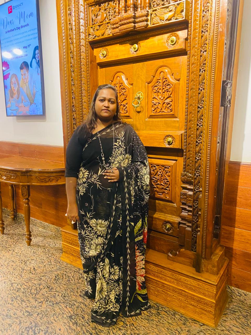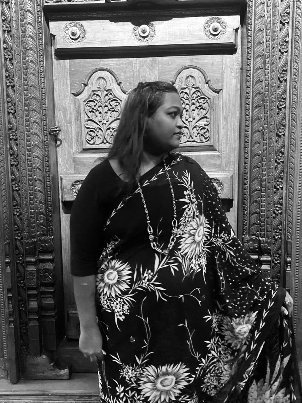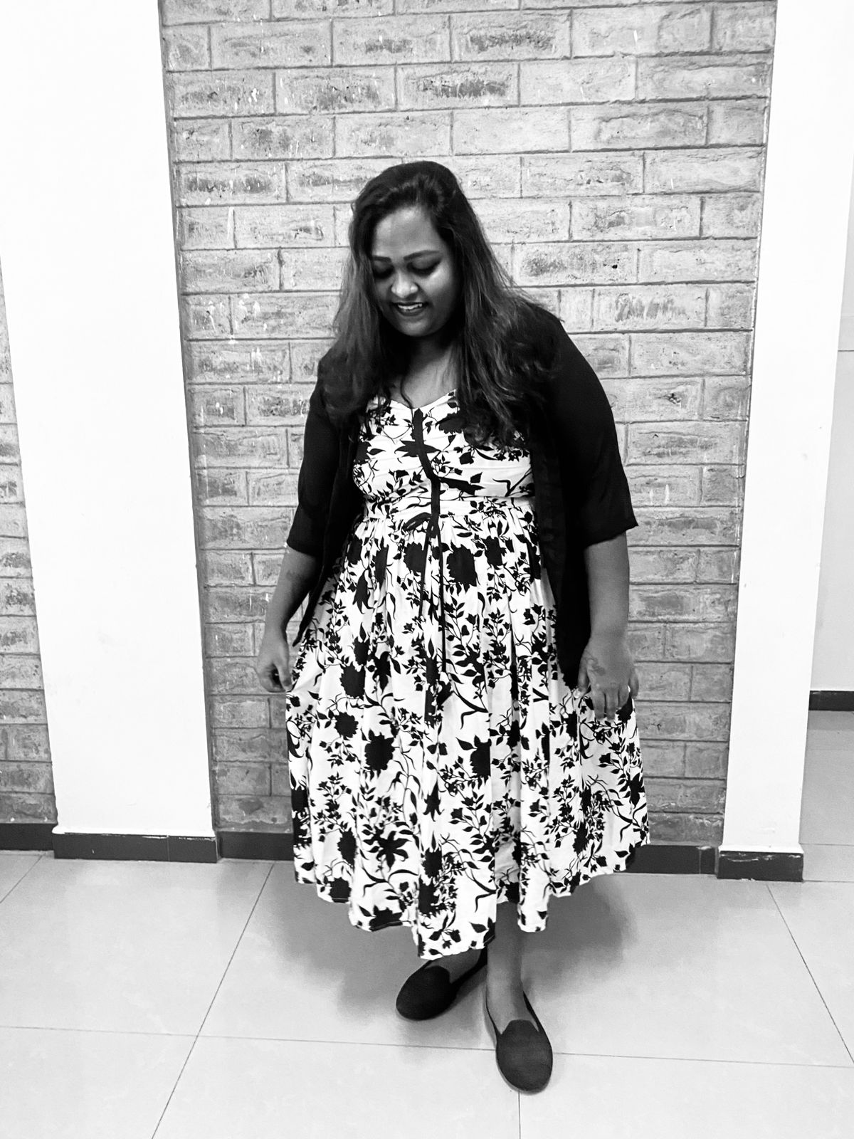 After lunch, me and the rest of the gang (Sushma & Sai) bid adieu to Kavya, wished her a happy married life and headed back to the service apartment. From there everyone was going their separate ways. I decided to head to my uncle’s house since he already knew I was in Madurai and he’d definitely be hurt if I didn’t go visit them. Also, I haven’t booked my return ticket. So I decided to stay the night there at his place and then head home the next day. I slipped into the other dress that I had because I was feeling very uncomfortable in saree. This dress is a sleeveless black & white western wear with a plain georgette black shrug. This dress was custom made from one of the instagram pages I followed.