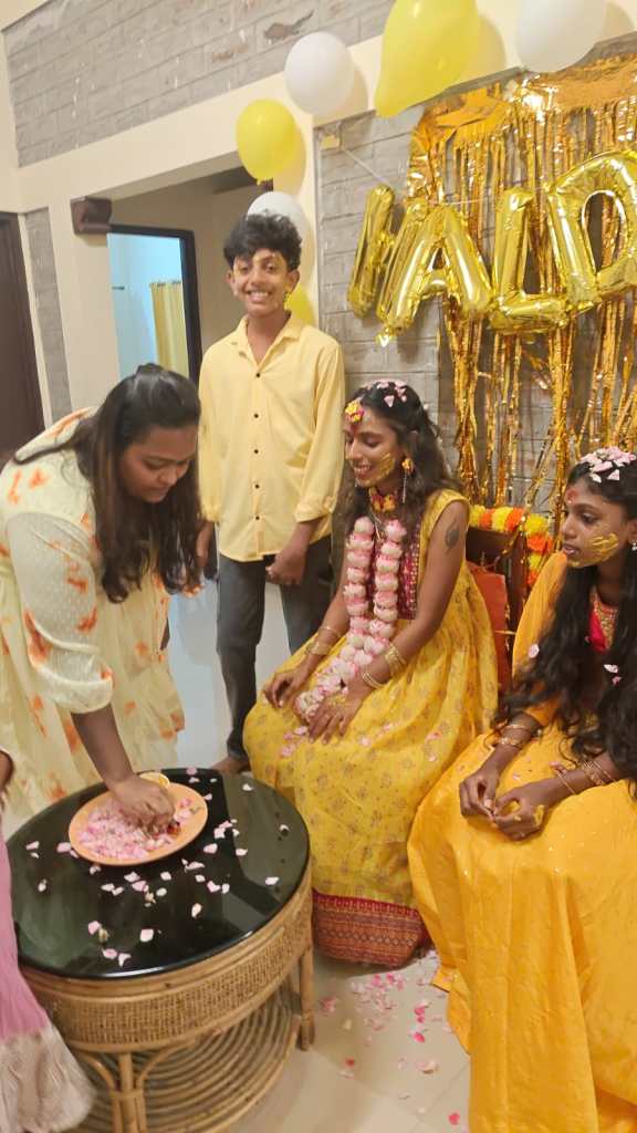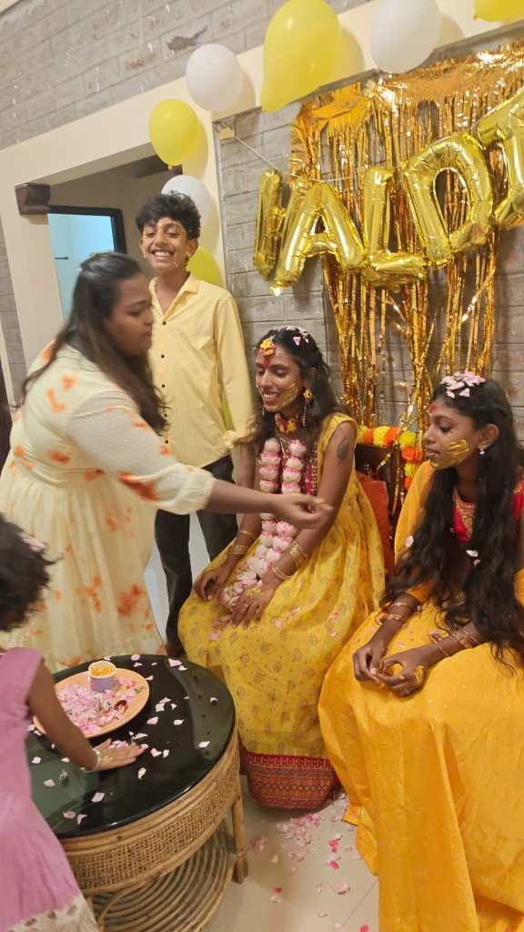 Around a week before her wedding, Kavya called me to check if the arrangements had been made. During the conversation, I understood that she was doing everything by herself and the bride needed to be cheered up. You all know how I like to make others’ day special. So I casually asked her if she had planned any sangeet or haldi or anything of that sort. She sighingly said that she wished but I could sense that she would very much enjoy it. I asked for her close friend’s number so I can connect with them and plan something. She shared one of her contacts.